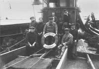 The crew of the Trawler 'Ben Doran' which went ashore on the Ve Skerries, Shetland, on 28/3/1930.