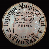 Copper herring barrel stencil. Trade mark 'Excelsior Prime registed Stronsay. Duncan Macivor.