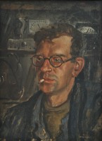 Framed oil on canvas portrait of John Isbister, known as 'John I' who was an amateur wireless enthusiast. Painted by Ian MacInness (1922 - 2003)