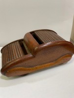 Car Cigarette holder or box. Wooden cigarette box made in the shape of a car with roll back roof and bonnet to store a pack of woodbine cigarettes and cigartte papers. Made by an Italian Prisoner