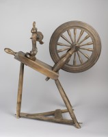 Spinning wheel with sloping table. Inscribed SIMPSON, LEITH. Orkney.