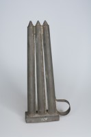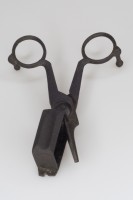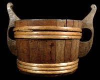 Two horned ale cog, made of sectors of wood, bound around with willow. Diameter 10" Height 7".