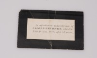 A & b. Two memorial cards, one with photograph adhering, "In affectionate remembrance of JAMES SKINNER, who died 13th May 1879, aged 43 years"