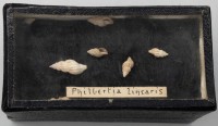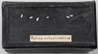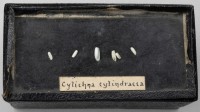Class: Gastropoda. 6 specimens. White and cylindrical with the aperture running the length of the shell.
