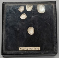 Class: Gastropoda. 6 specimens. Minute, oval-shaped, white and glossy.