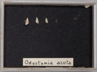 Class: Gastropoda. 4 specimens. Very small, white and conical. Pointed, with straight sides and with 5-6 whorls. Does not live intertidally, but at depths of 20m-80m with Bryozoas.