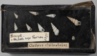 Class: Gastropoda. 9 specimens. White and conical with defined whorls of which it has approximately 8. This shell is also spire like.
