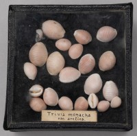 Class: Gastropoda. Trivia Monacha var. monacha 16 specimens. Similar to var. arctica but with up to 3 brown spots along the centre.