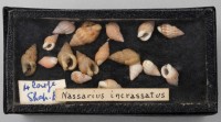 Class: Gastropoda. 8 specimens. Spire shaped with relatively flat whorls but very distinctive 'netting' ridges covering the outer surface. Rounded apex, fairly thick, tough shells.