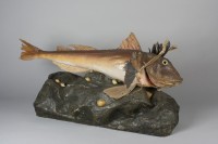 Grey Gurnard: Eutrigla gurnardus. Stuffed fish mounted on base.