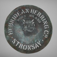 Copper herring barrel stencil of Stronsay based companies. Hebridean Herring Company