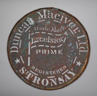 Copper herring barrel stencil of Stronsay based companies - Slater's Brand